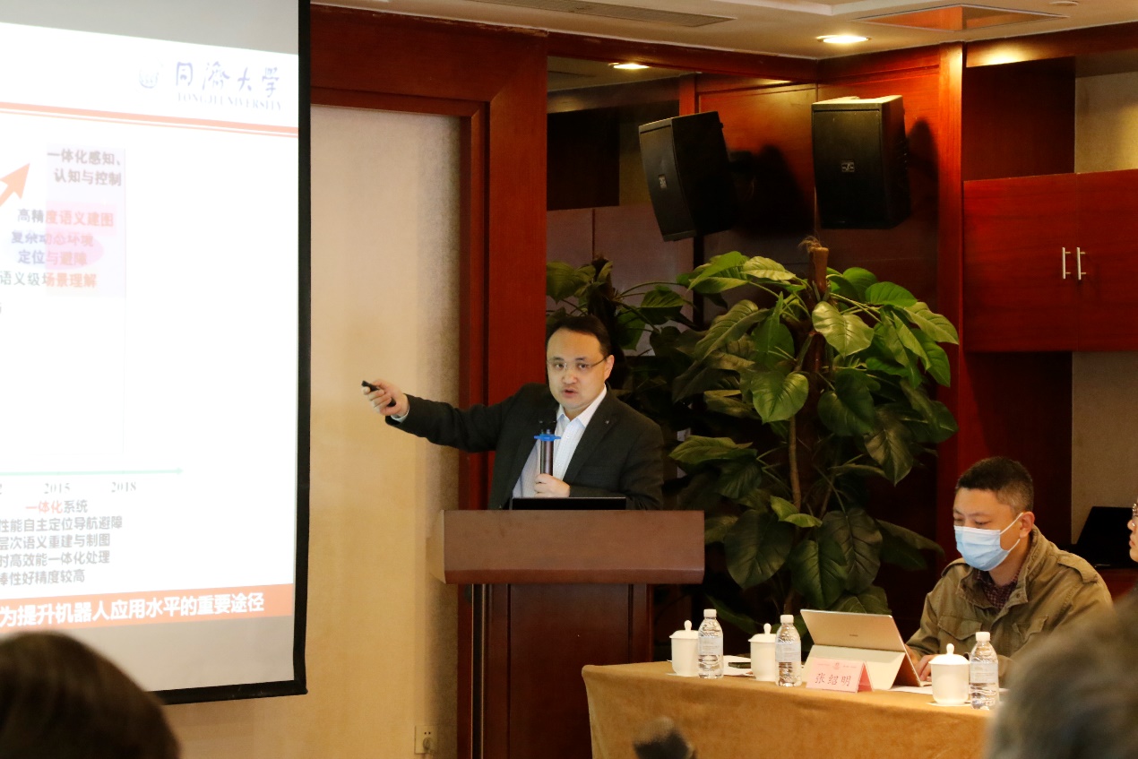 On April 7, the High-tech Research and Development Center of the Ministry of Science and Technology organized a mid-term inspection in Shanghai for the key special project of the “intelligent robot” of the national “13th Five-Year” key research and development plan, “visual-based robot environment modeling and positioning and navigation”. The project is led by Tongji University, with Wuhan University, Sun Yat-sen University, Institute of Aerospace Information Innovation of the Chinese Academy of Sciences and Shanghai Jiaotong University. "Intelligent Robots" Specialized Experts of the General Team, Professor Han Jianda of Nankai University, Professor Liu Hong of Peking University (Shenzhen), and Professor Wang Jinyou of the Central Academy of Mechanical Sciences Group Co., Ltd., and fellow experts, Professor Lan Zhi of the National Rehabilitation Aids Research Center Gao Gong, Professor Chou Wusheng of Beijing University of Aeronautics and Astronautics, and researcher Wu Xinyu from Shenzhen Institute of Advanced Technology, Chinese Academy of Sciences jointly formed an expert group to inspect the project. The inspection meeting was presided over by Zhang Mengyue, the special director of the High Technology Center of the Ministry of Science and Technology. The head of the scientific research management department of our school attended the meeting and delivered a speech on behalf of the undertaking unit. More than 60 project leaders, project leaders, project backbones and project participants attended the meeting.